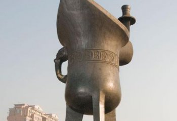 大型不銹鋼仿銅酒杯雕塑,傳承酒文化